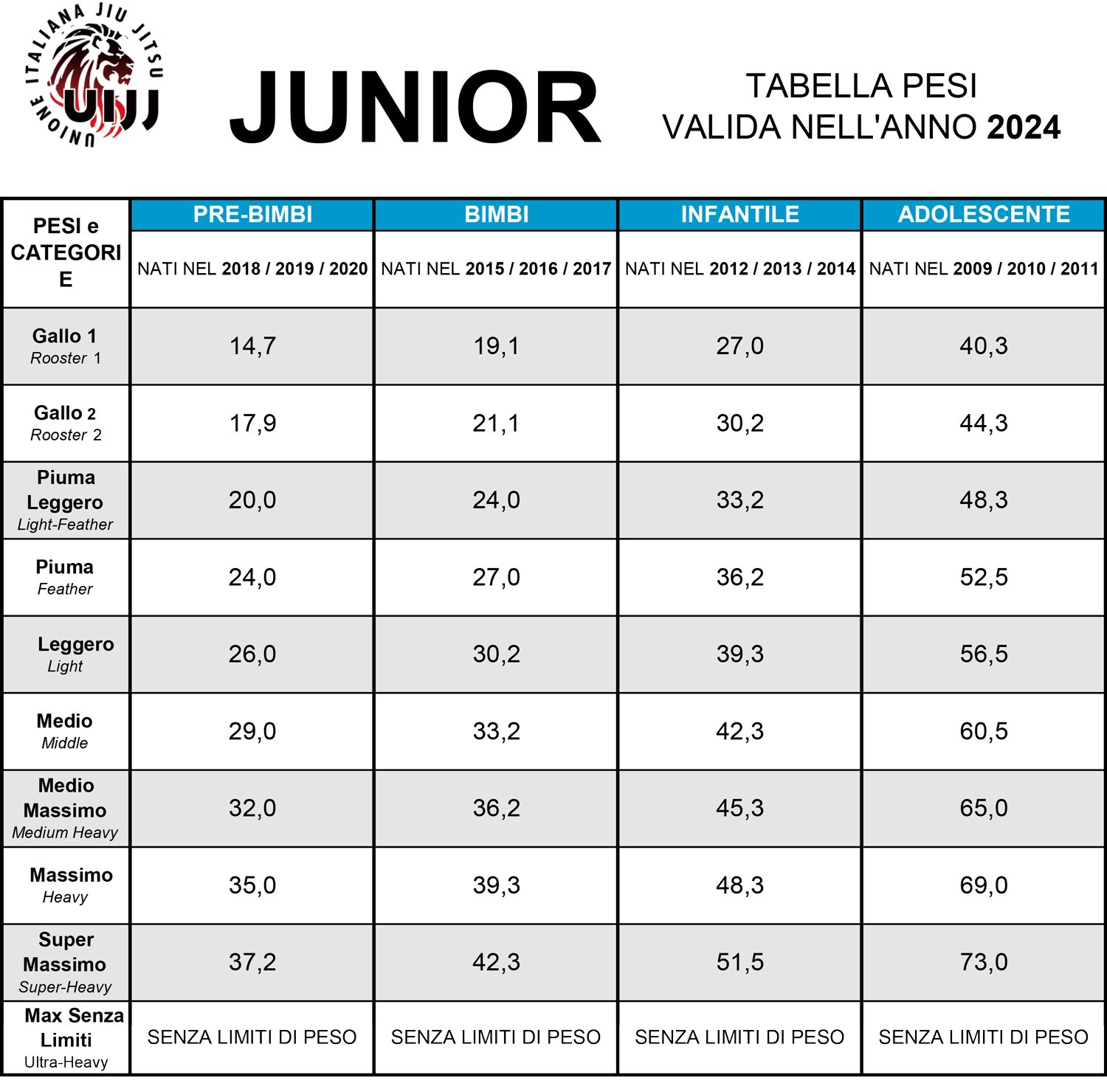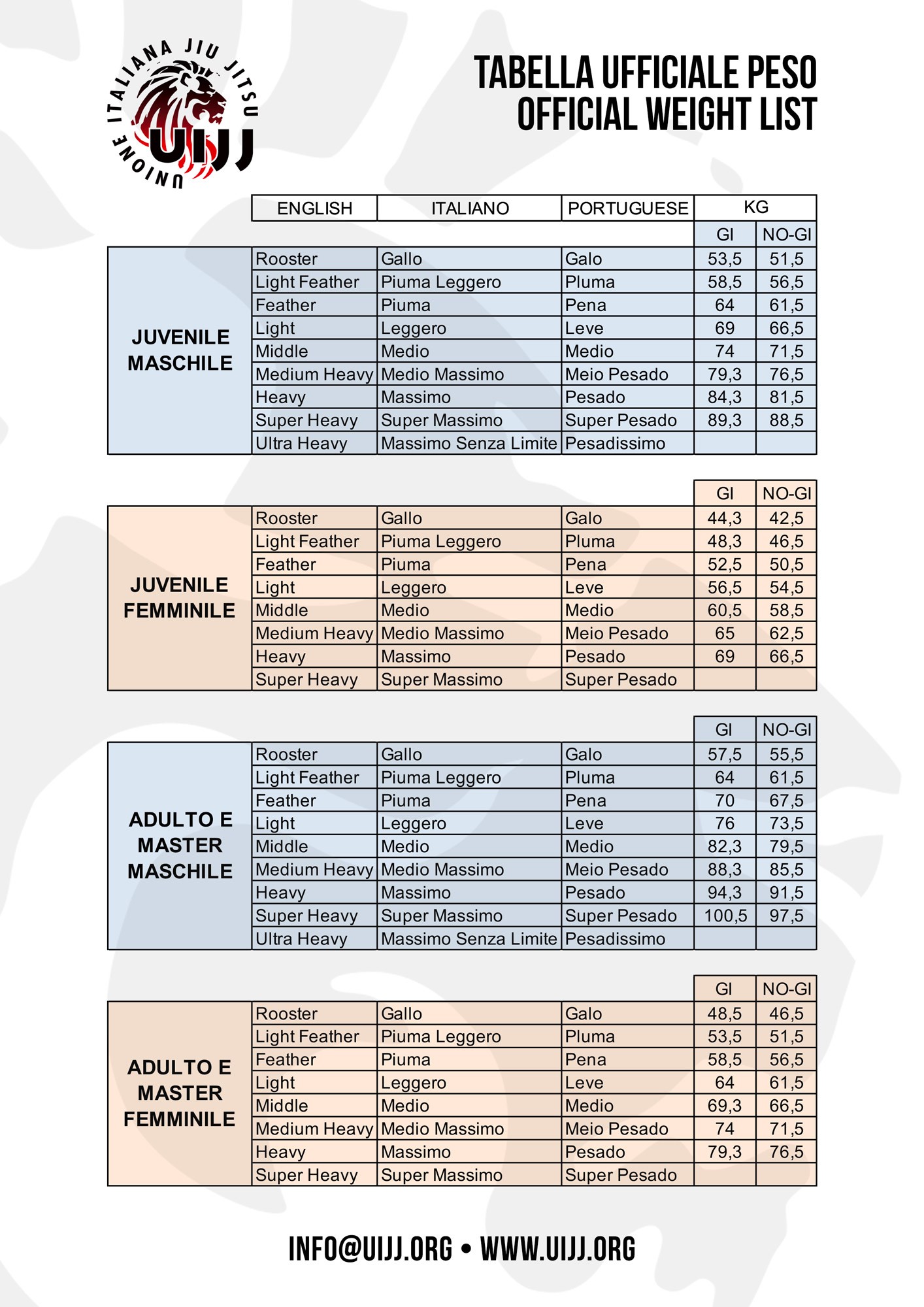 Ogni modifica può essere richiesta inoltrando una email a direzionetecnica@uijj.org entro e non oltre il giorno 08/09/2024 ore 24:00